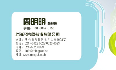 时尚简约蓝绿渐变水纹图文科技竖版名片设计